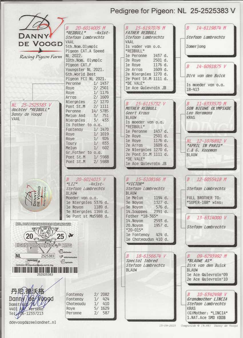 Grandson of Van Den Bulck's foundation breeders